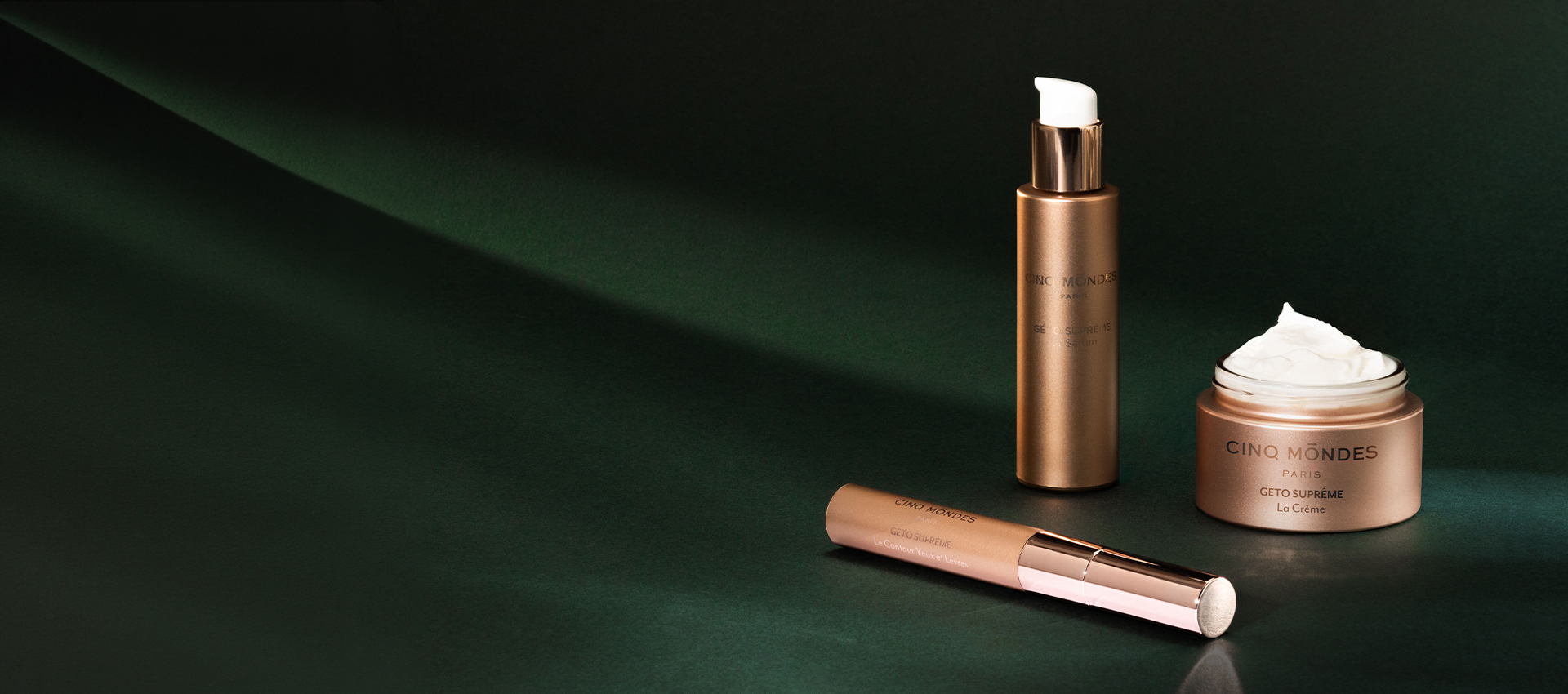 Géto Sûreme est une gamme de soins innovants de Cinq Mondes, spécialement conçue pour répondre aux besoins des peaux matures. Alliant efficacité et sensorialité, elle propose des produits aux formulations exclusives, enrichies en actifs d’origine naturelle, pour revitaliser et redonner éclat à la peau.