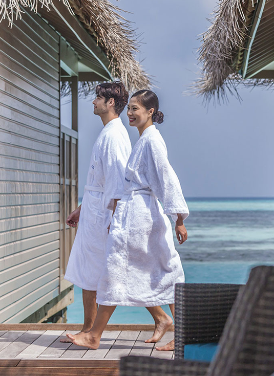 A true invitation to travel, this new Spa is ideally located in the middle of the ocean for total immersion in the heart of the Maldives. At your disposal, you will find individual and double treatment rooms to share a moment of well-being for two, a relaxation area and a reception where you can purchase Cinq Mondes products.