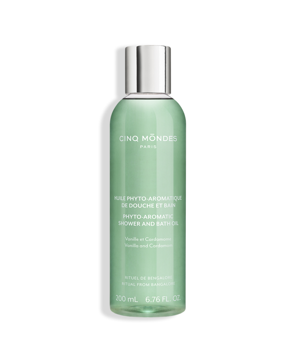 The Aromatic Shower and Bath Oil (Bangalore's Ritual, India) combines the moisturizing* power of vegetable oils with the soothing properties of Cardamom essential oil and Vanilla absolute. On contact with the skin, this oil turns into a milky emulsion and then a creamy lather.