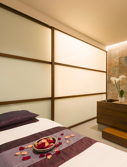 The Cinq Mondes boutique-spa contrasts with the urban hustle and bustle and offers a setting conducive to relaxation. Nestled inside are a cozy lounge and more than seven treatment rooms, hidden behind a huge door that keeps the sensory art of “betterness” tucked away. An exceptional locale, which spreads out over more than 4,000 sq. ft, designed to be a real “urban retreat” where you can experience a holistic interlude while still in the city.