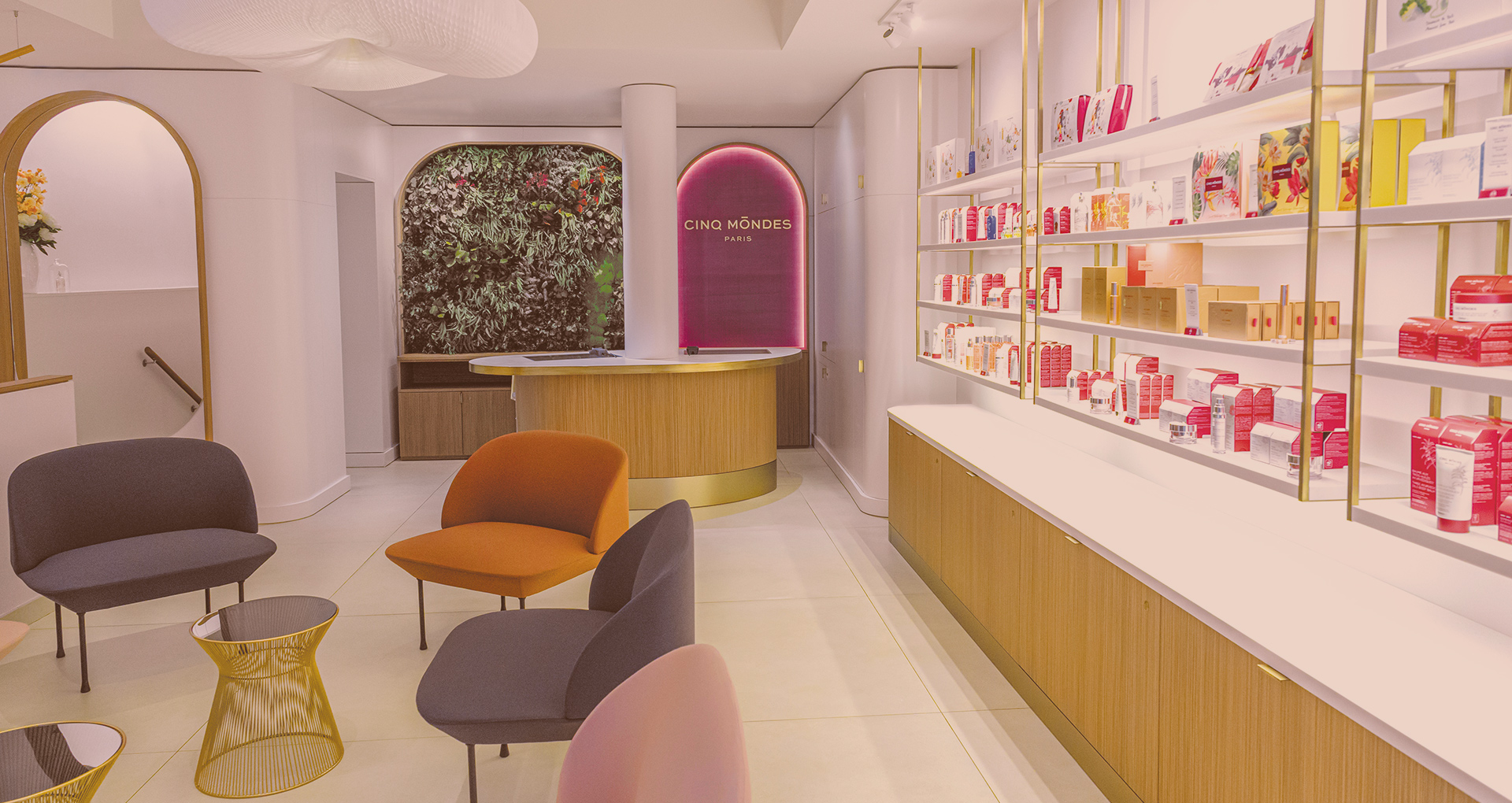 Experience the new Cinq Mondes Spa & Boutique in the prestigious Parisian department store La Samaritaine. The Cinq Mondes boutique-spa contrasts with the urban hustle and bustle and offers a setting conducive to relaxation. Nestled inside are a cozy lounge and more than seven treatment rooms, hidden behind a huge door that keeps the sensory art of “betterness” tucked away. This exceptional locale, which spreads out over more than 4,000 sq. ft, is designed to be a real “urban retreat” where you can experience a holistic interlude while still in the city. The majestic Okinawa Ritual signature treatment was created exclusively for this unique location and offers a brand new well-being experience. You can also delight in our three-day cures or 20-minute express treatments inspired by our most iconic rituals. Continue your sensory journey in our luxurious boutique, dedicated to helping you (re)discover our cosmetic products and the art of gift giving by Cinq Mondes. It is so much more than just a Spa and a boutique – it is a true ode to slowing down and well-being!