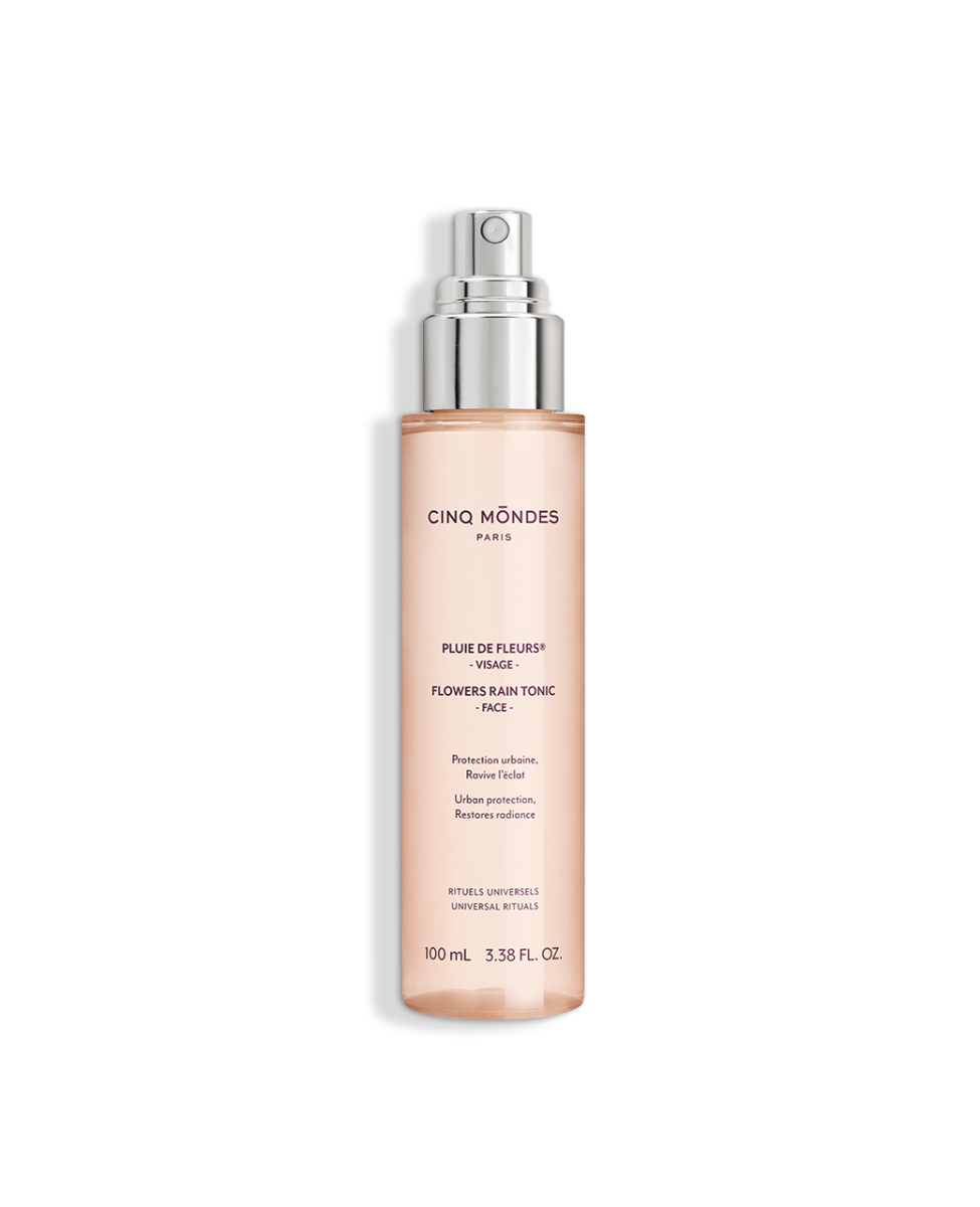 La Pluie de Fleurs est complémentaire à vos produits de beauté quotidiens, à utiliser sans modération. Effectuez une pression longue et diffusez sur le visage, le cou et le décolleté, avec les yeux clos, à une vingtaine de centimètres du visage, pour une brumisation homogène.