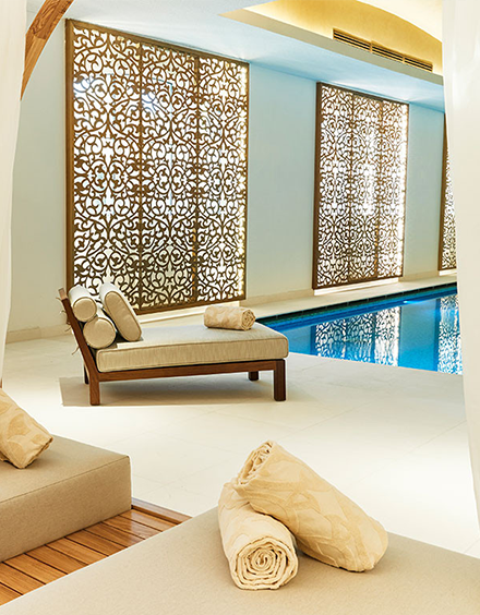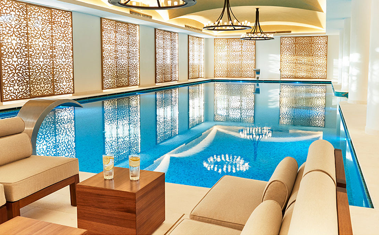 Un Spa Cinq Mondes exceptionnel à la pointe de la technologie hydraulique et aérienne, la plus grande piscine intérieure du Moyen-Orient et un majestueux hammam.