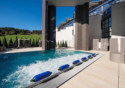 1000 m2 de bien-être vous attendent dans notre nouveau Wellness. Nagez dans le bassin intérieur à 29°C et prélassez-vous dans le bassin extérieur à 36°C avec jets massant et cascade